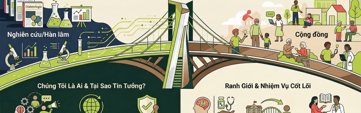 Chúng tôi sử dụng ngôn ngữ đời thường dễ hiểu để chia sẻ các kết quả nghiên cứu y khoa đáng tin cậy, nhằm thúc đẩy sức khỏe cộng đồng. Chúng tôi tập trung giúp mọi người phòng ngừa và kiểm soát các bệnh liên quan đến tâm – thân, đặc biệt là bệnh tiểu đường type 2.
